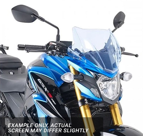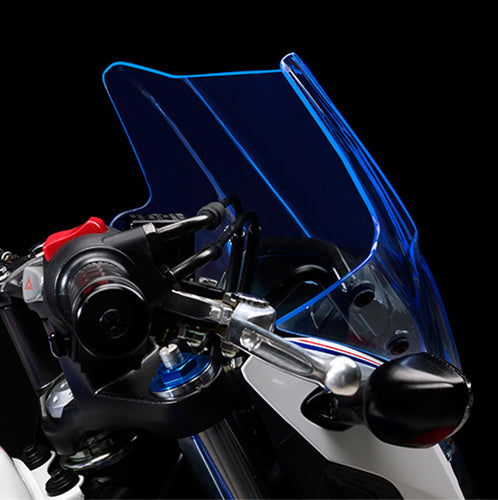 A5125BL - Specific "ICE" screen 28 x 36,5 cm (H x W). Complete with specific fitting kit. When illuminated by vehicle headlights in low light conditions, the edge glows blue in colour. Note: the picture is a representation of the ICE screen - it is not the actual screen that fits this bike